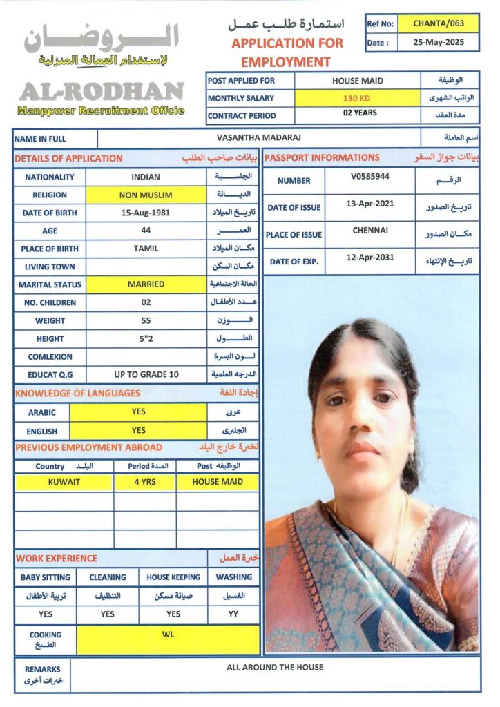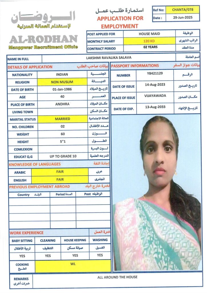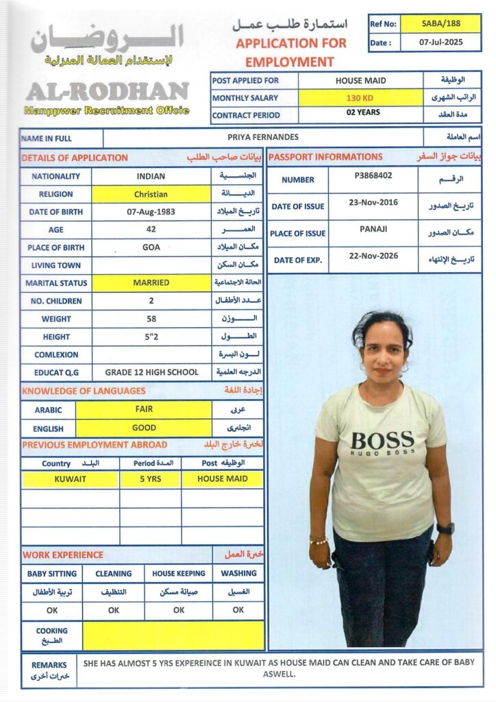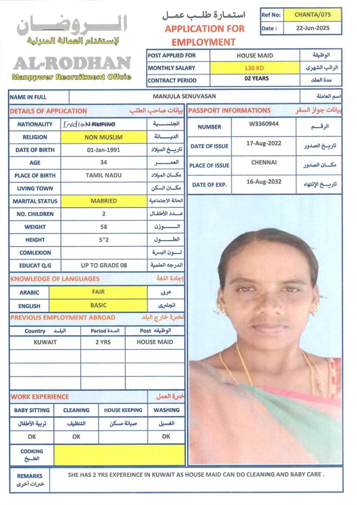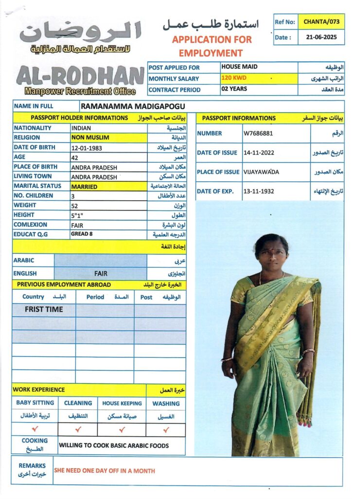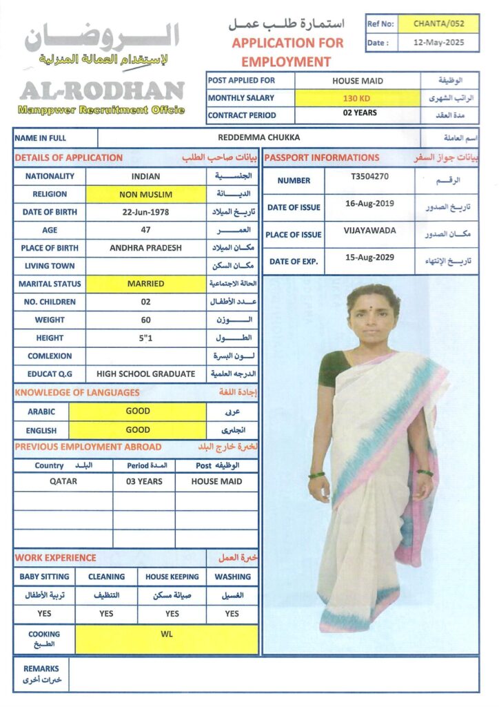 40-52, non-muslim, أنثى, التوفر, طباخات, عامل منزل, عاملة منزل, متوفر, هند