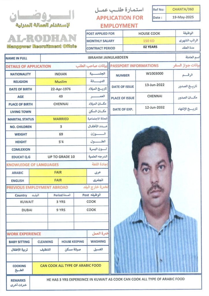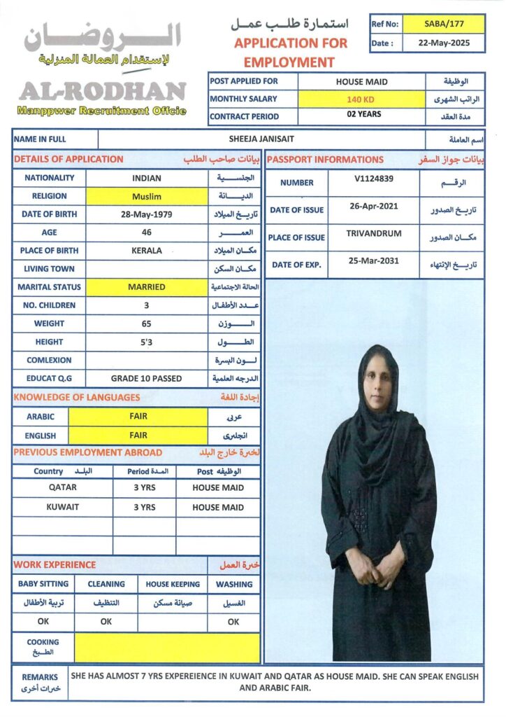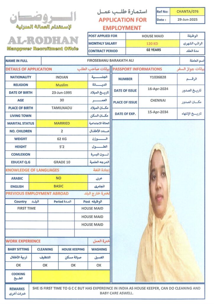 40-52, muslim, أنثى, التوفر, طباخات, عامل منزل, عاملة منزل, متوفر, هند