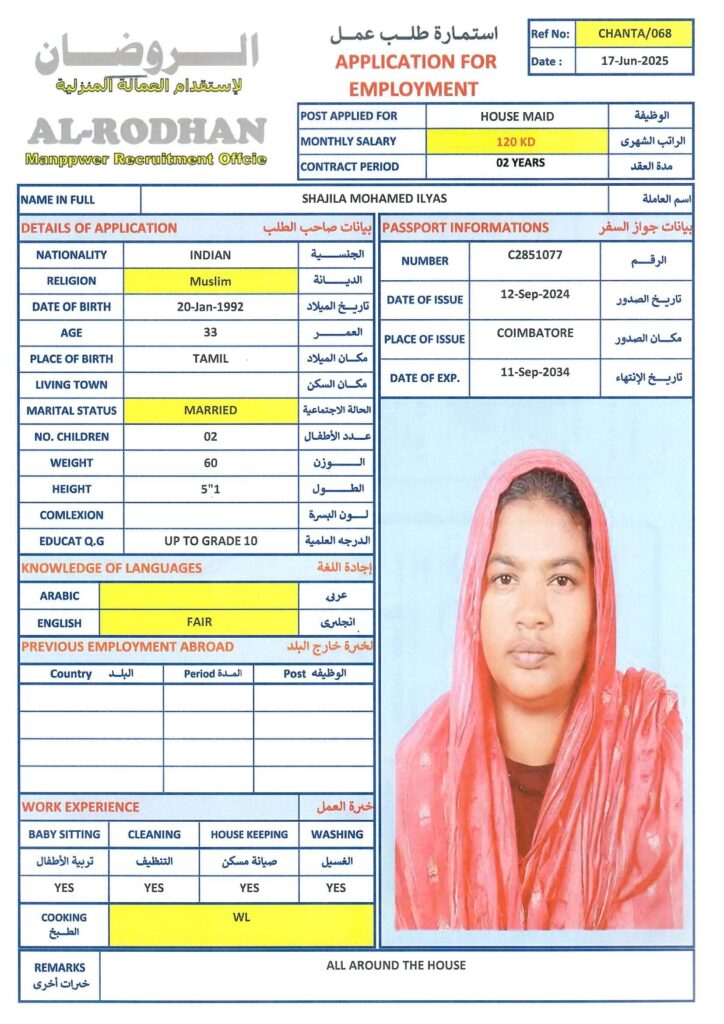 30-39, non-muslim, أنثى, التوفر, عامل منزل, عاملة منزل, هند