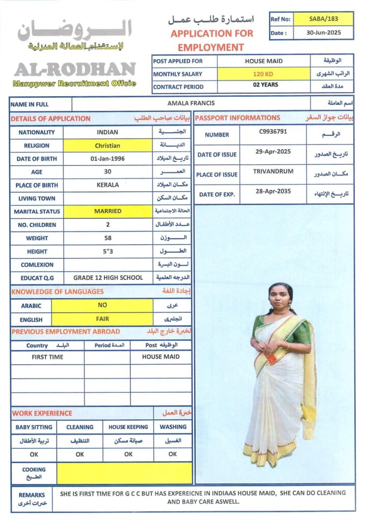 30-39, non-muslim, أنثى, التوفر, عامل منزل, عاملة منزل, متوفر, هند