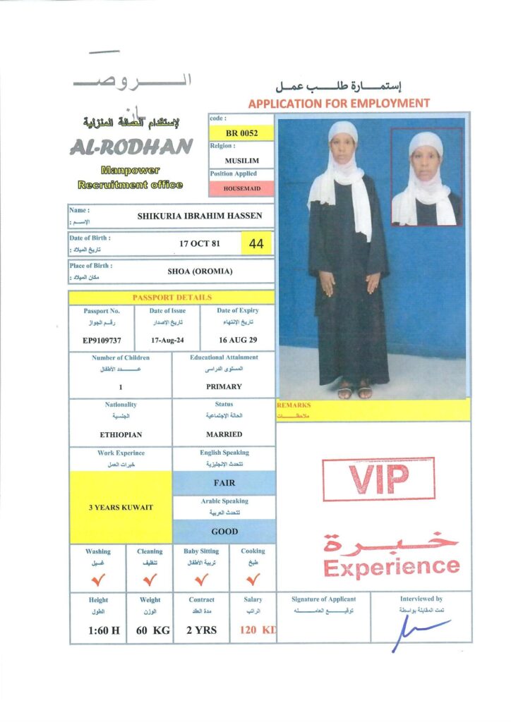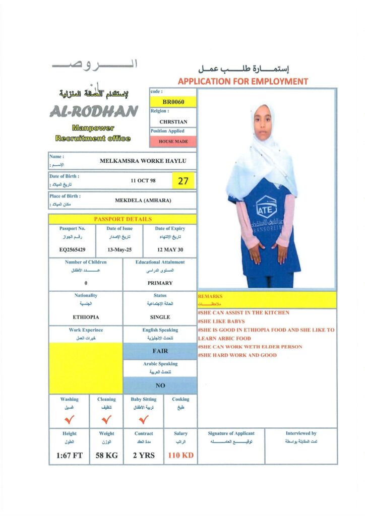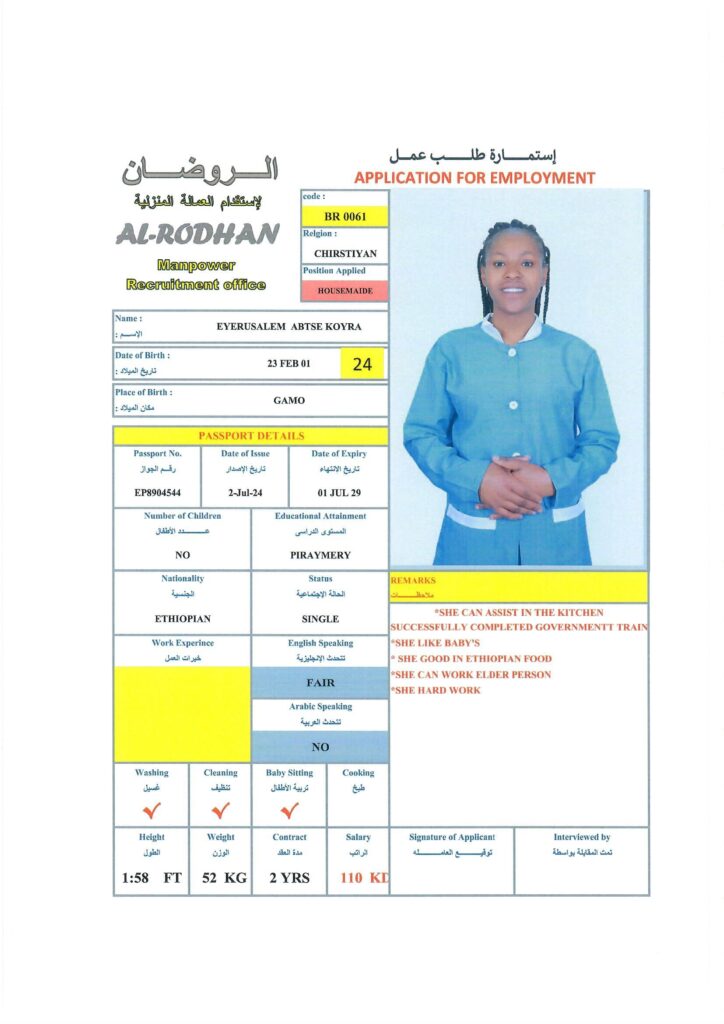 40-52, non-muslim, أنثى, اثيوبيا, التوفر, عاملة منزل, متوفر