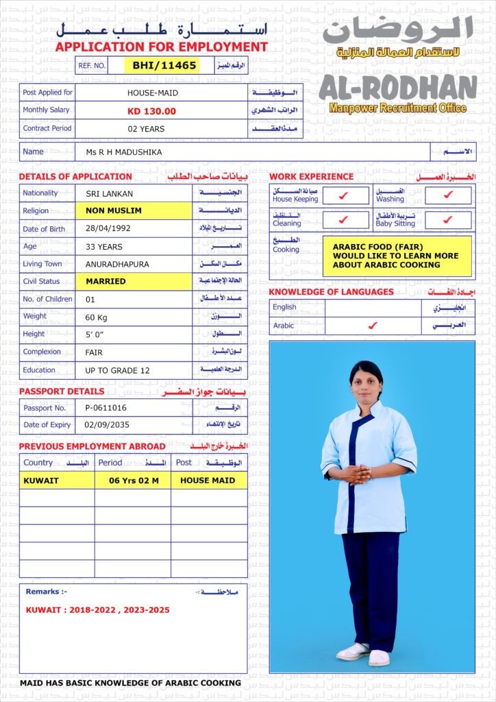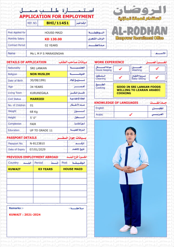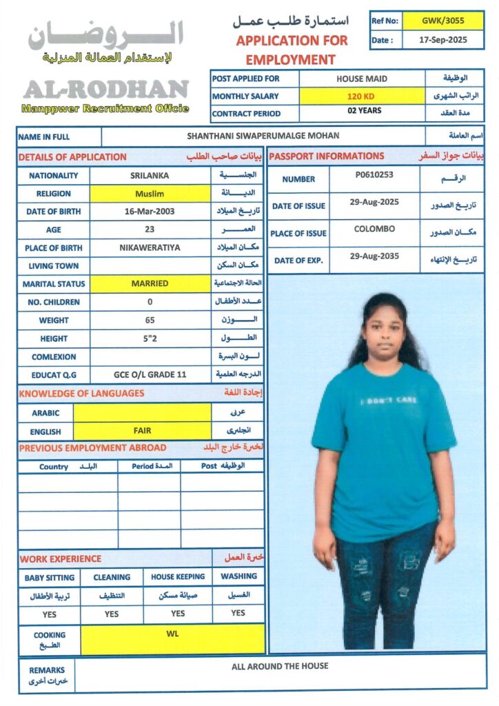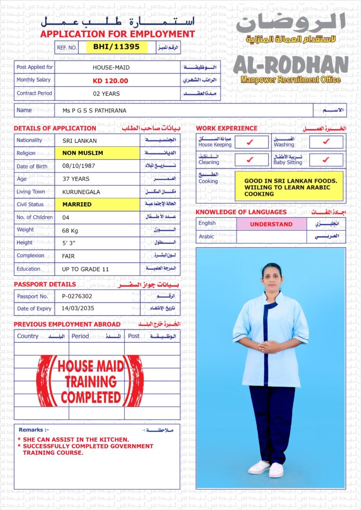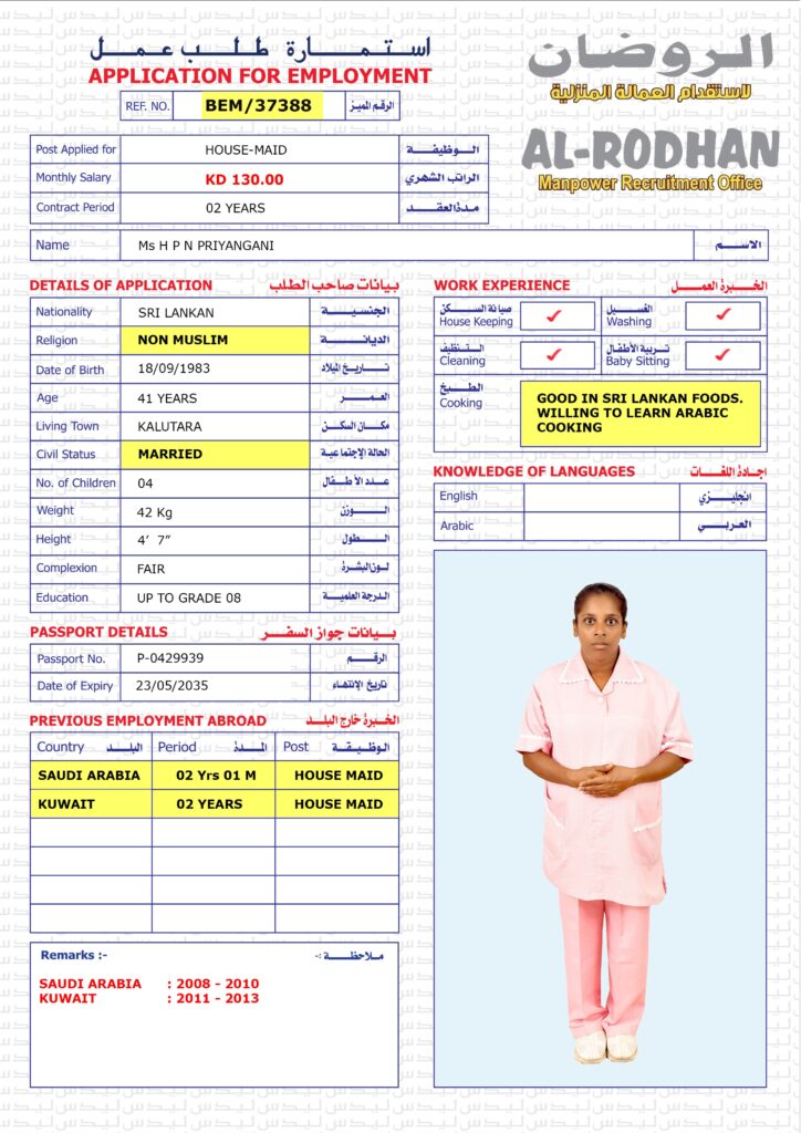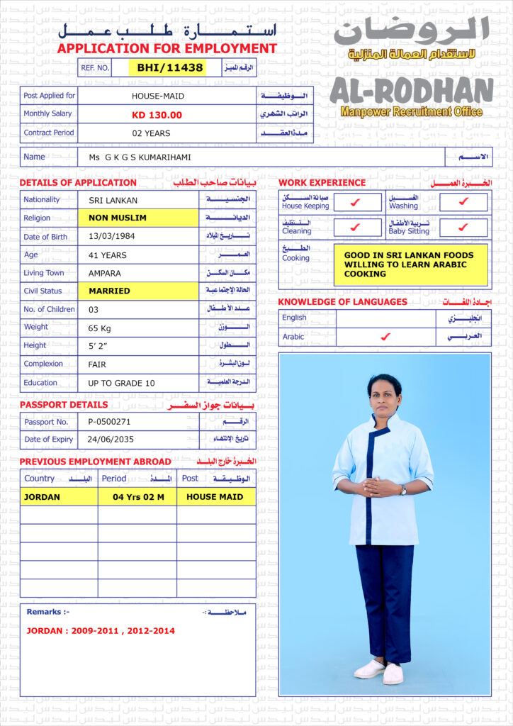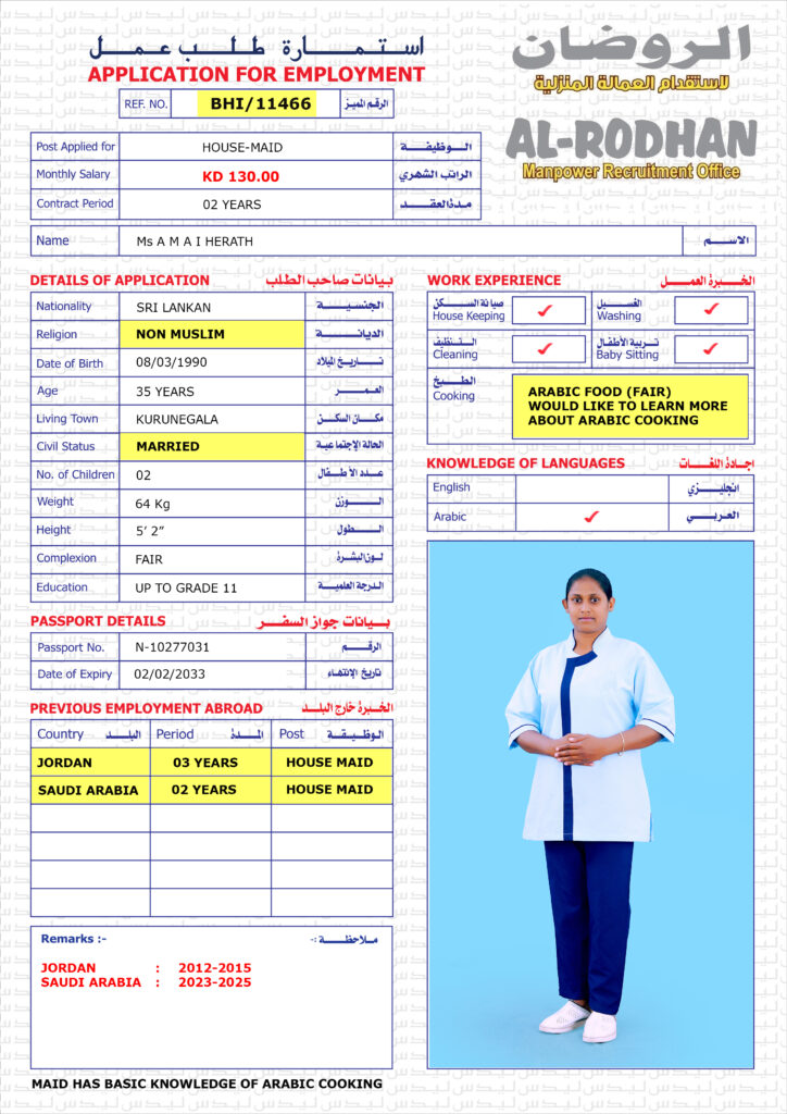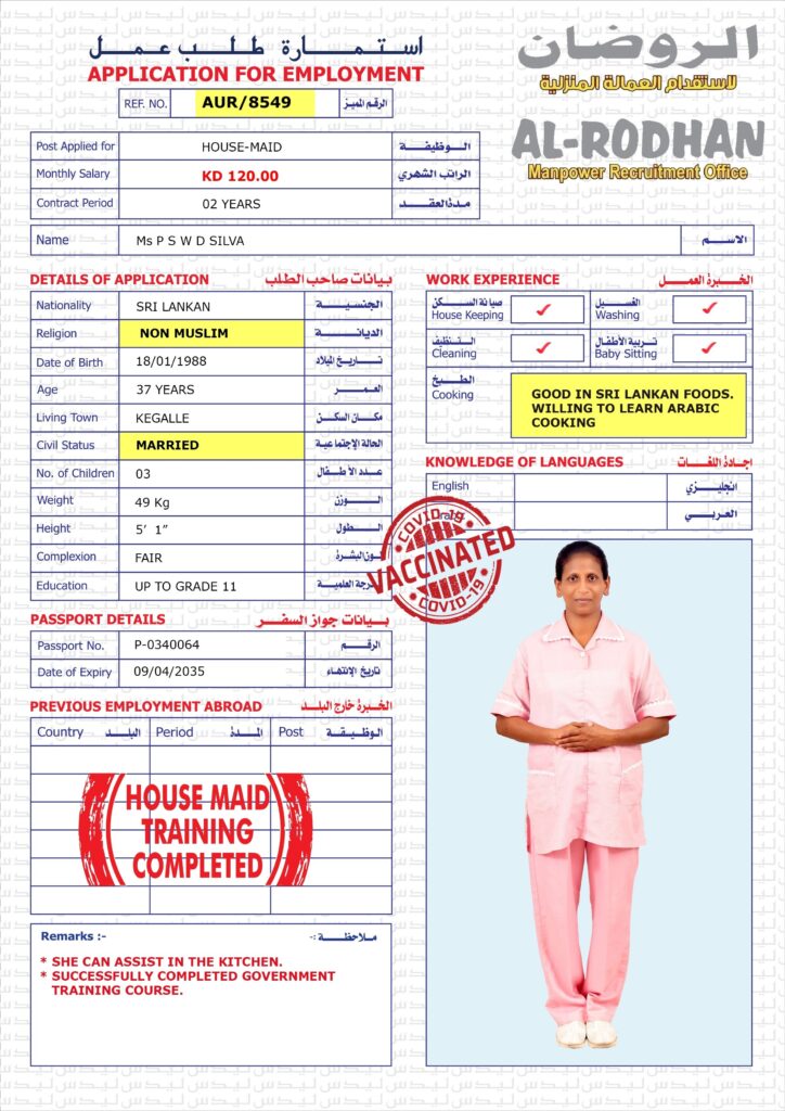 30-39, non-muslim, أنثى, التوفر, سيلان, طباخات, عاملة منزل, متوفر