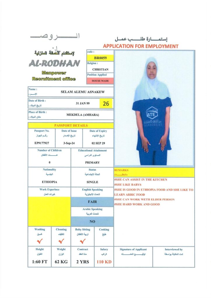 30-39, non-muslim, أنثى, اثيوبيا, التوفر, عاملة منزل, متوفر