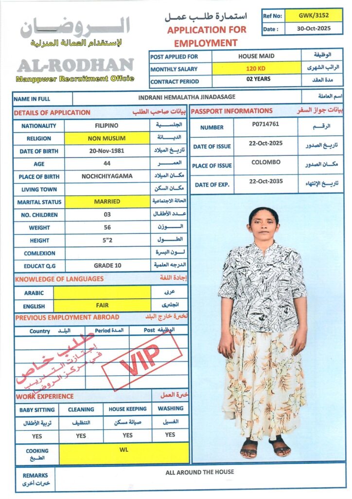 40-52, non-muslim, أنثى, التوفر, عاملة منزل, متوفر, هند